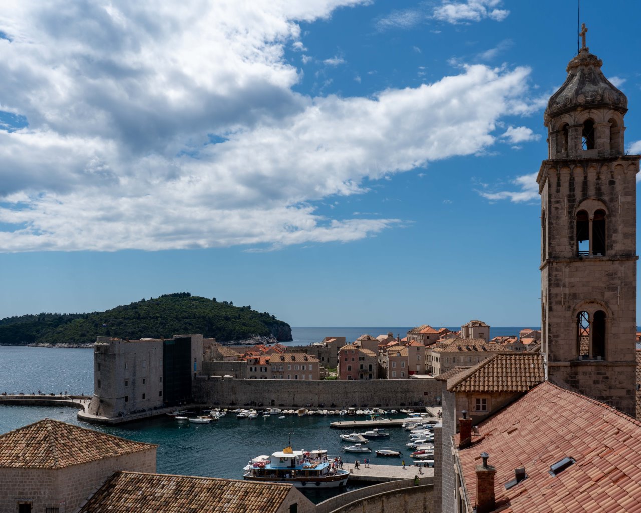 Unvermeidlich im Hintergrund ein Kreuzfahrtschiff, dessen Gäste später die Altstadt mit den Gruppen 1 bis 29 (gefühlt) bereicherten…