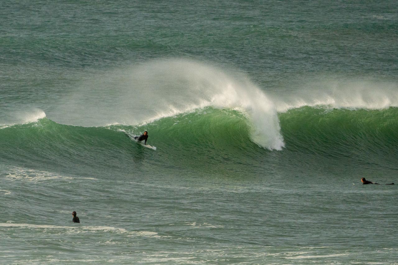 Ok, nicht zum Surfen – Olive und ich werden noch eine Abendrunde über die Düne drehen.